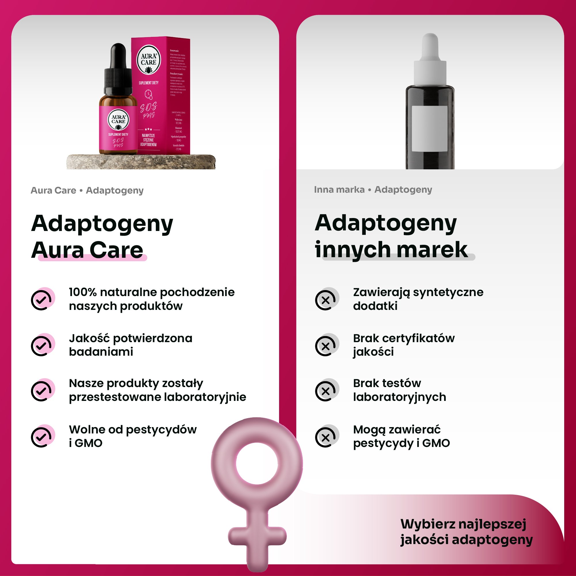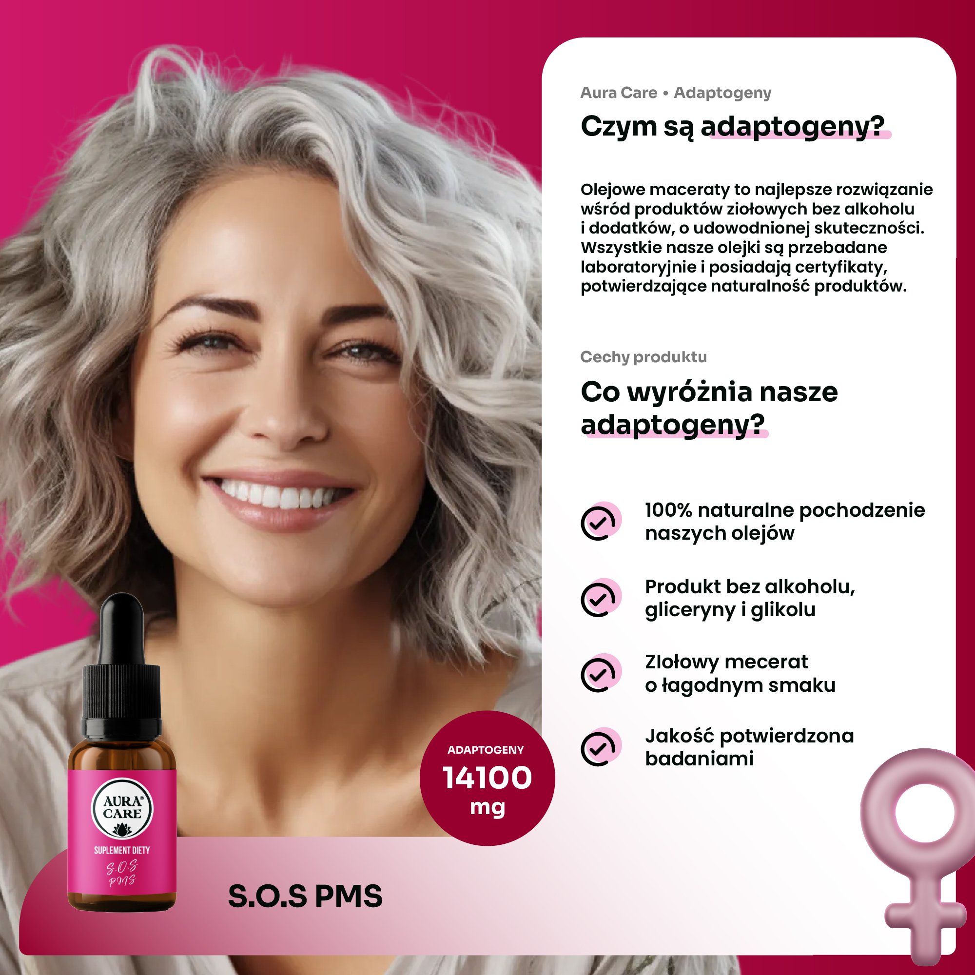 Aura Care S.O.S PMS – adaptogeny wspierające kobiecą równowagę hormonalną i samopoczucie.