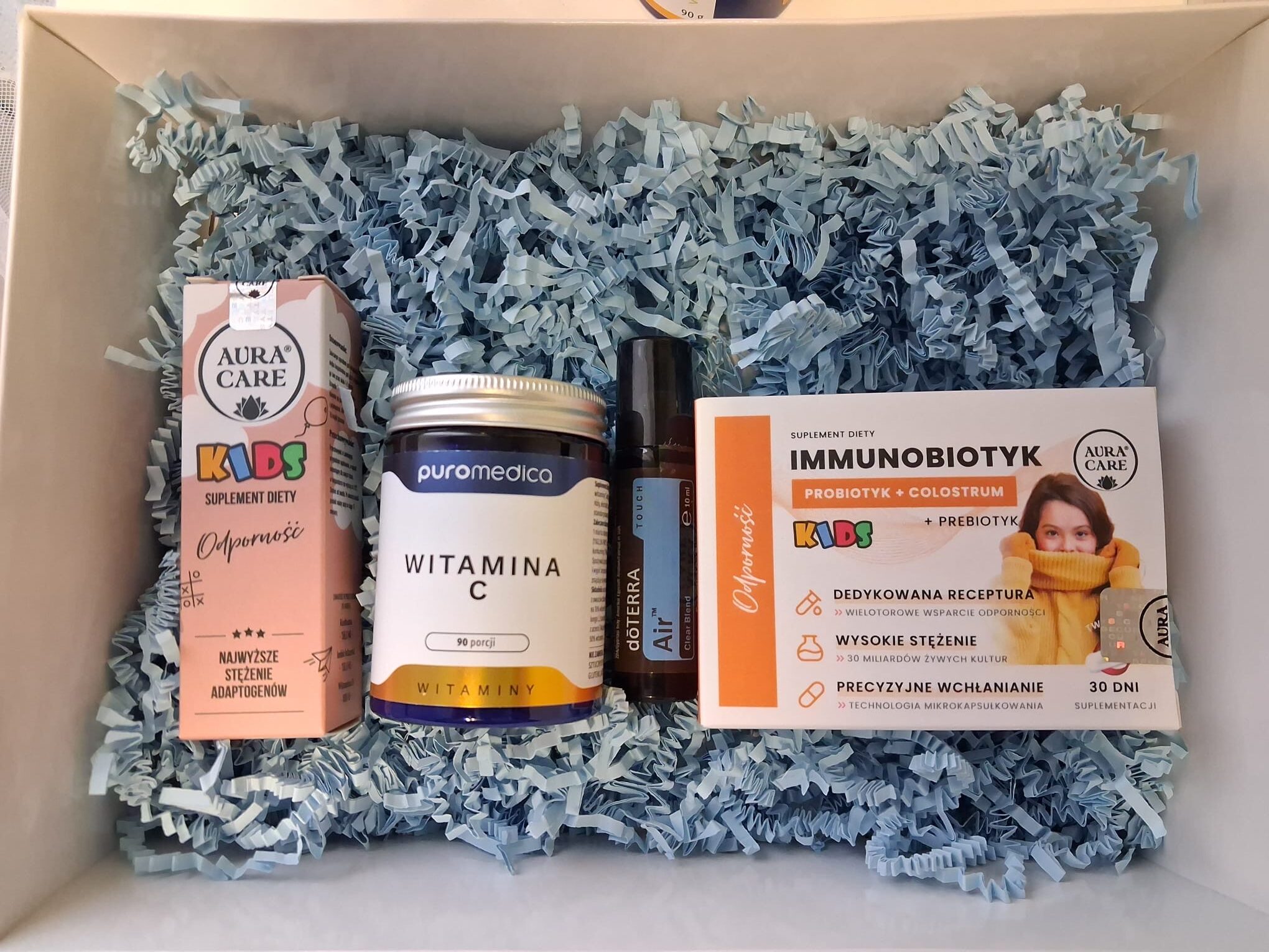 • Aura Care Immunobiotyk – probiotyk i prebiotyk dla dzieci (30 miliardów CFU)